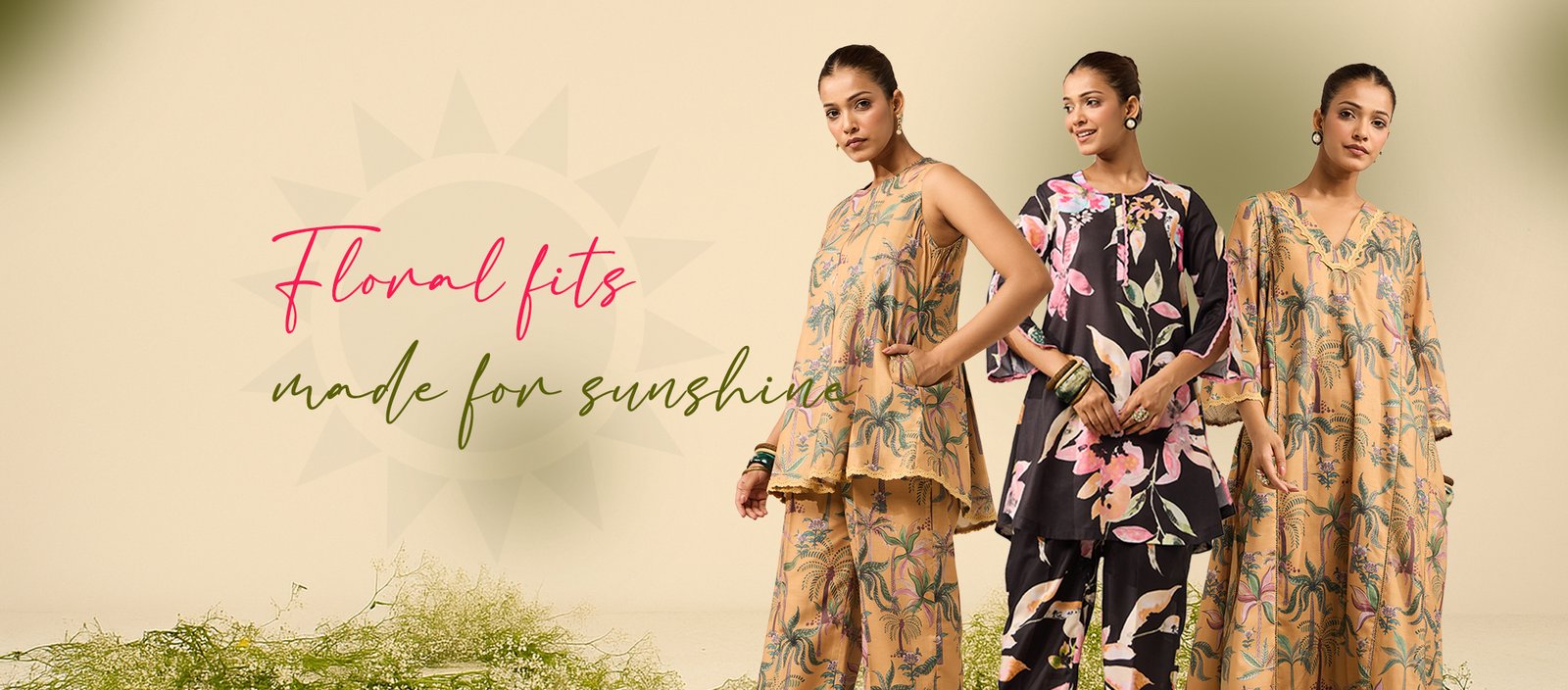 Hot pink panelled kurta - Mist Flora