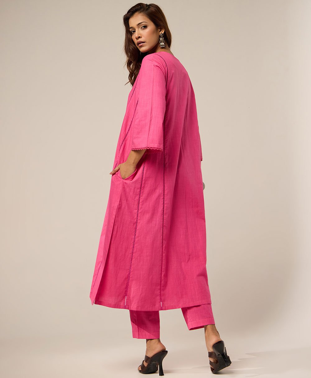 Hot pink panelled kurta – Mist Flora