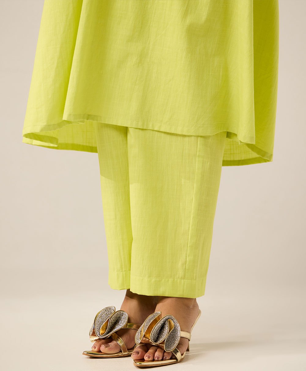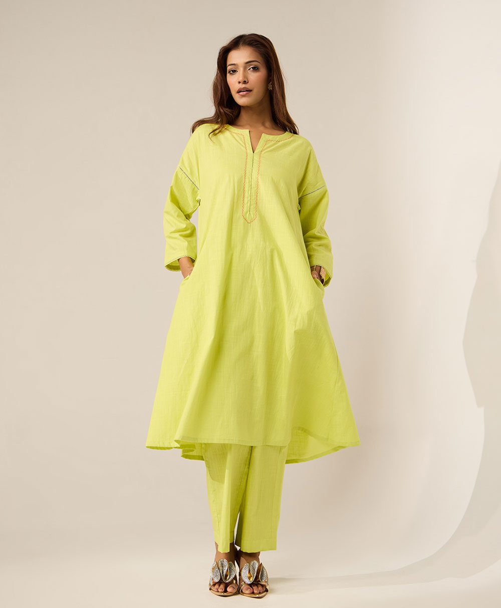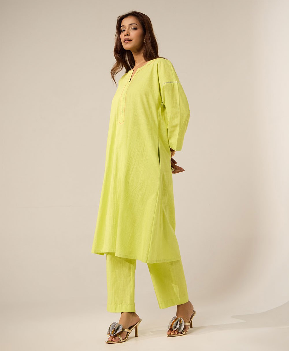 Lime Green Embroidered Cotton Kurta with Pants- Set of 2 – Mist Flora