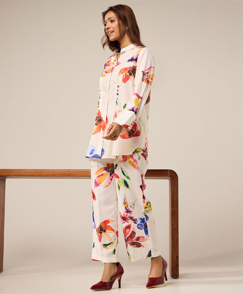 Off White Printed Cotton Co-ord Set- Set of 2 – Mist Flora